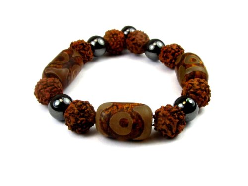 The Price On "Rudraksha Seed, Stone Dzi Bead, and Hematite Bead Stretch Bracelet" Just Dropped - Fast & Super Saver Shipping. Hot Savings!